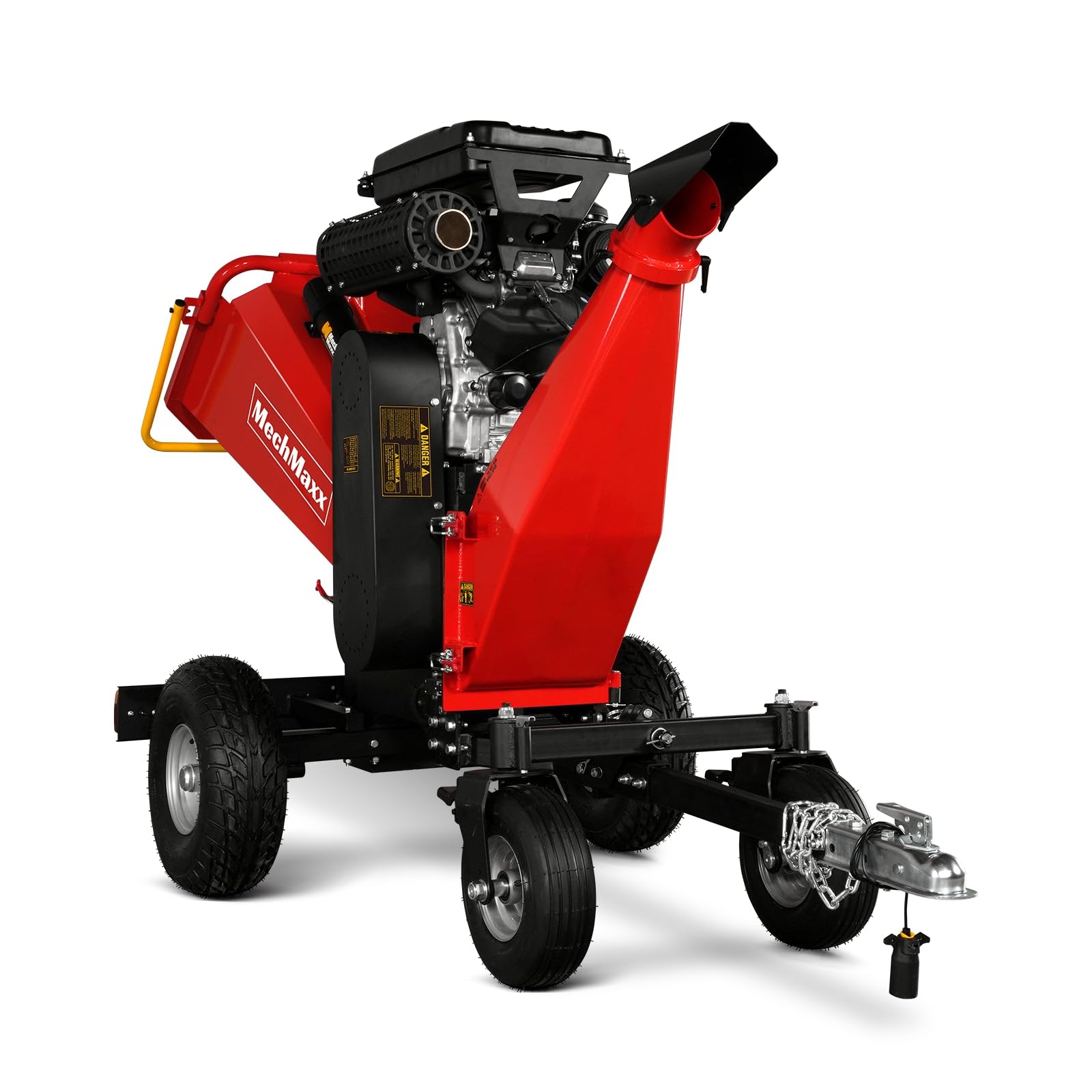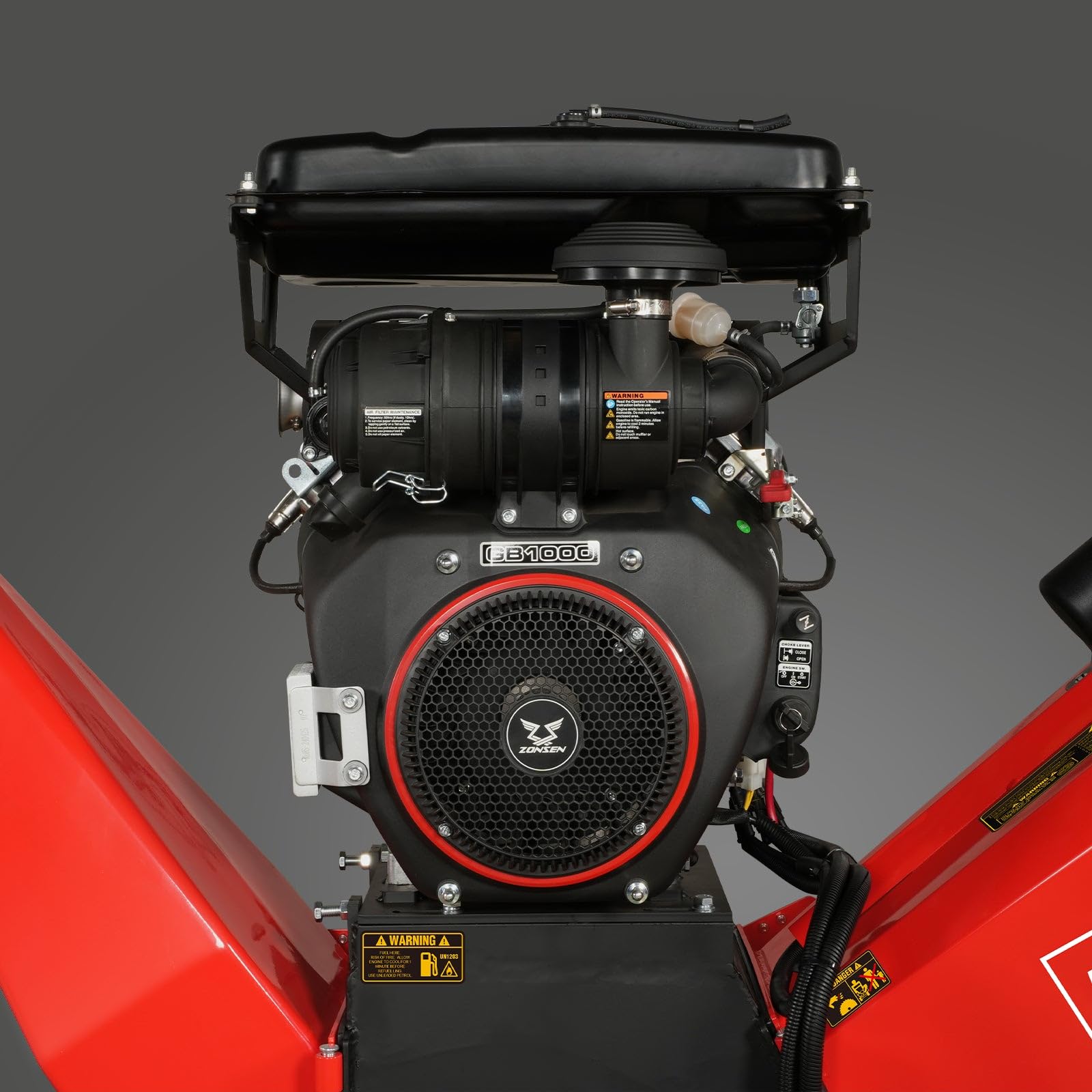 MechMaxx 8'' Inch ZONSEN 1000cc 35hp E-Start Gas Powered Engine 4-Wheels Wood Chipper Shredder Mulcher with Towbar/Tail Light/Emergency Stop Switch, Model B200 Red